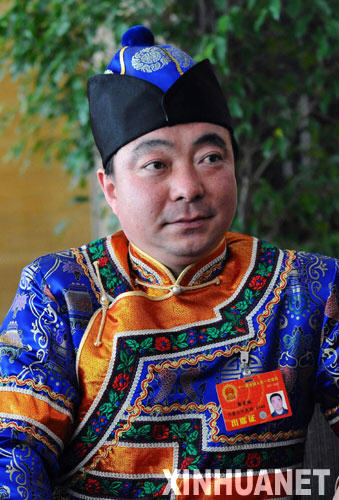 這是來(lái)自內(nèi)蒙古的全國(guó)人大代表郭宏林(達(dá)斡爾族)。 新華社記者李濤攝