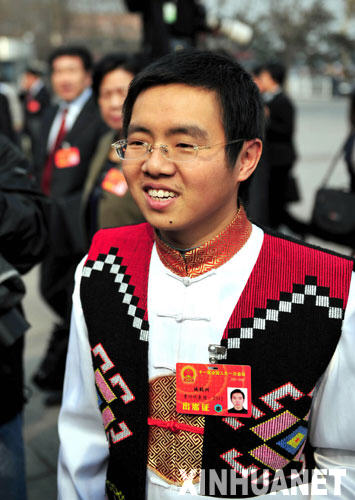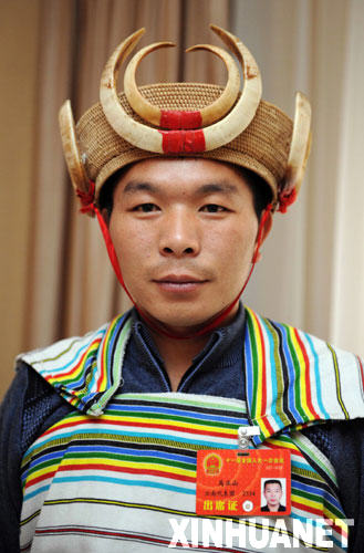 這是來(lái)自云南的全國(guó)人大代表馬正山(獨(dú)龍族)。 新華社記者楊宗友攝