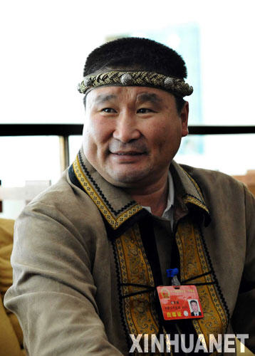 這是來自內蒙古的全國人大代表色音圖(鄂溫克族)。 新華社記者李濤攝