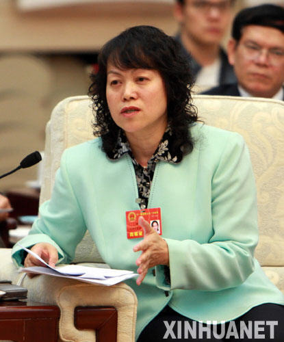 來自貴州的陳實代表(仡佬族)在代表團全體會議上。 新華社記者王建華攝