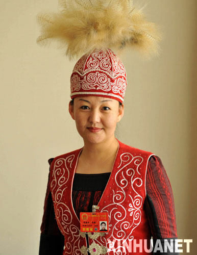 這是來自新疆的全國人大代表瑪麗亞·馬提(柯爾克孜族)。 新華社記者樊如鈞攝