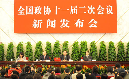 全國(guó)政協(xié)十一屆二次會(huì)議舉行新聞發(fā)布會(huì) 3月2日,全國(guó)政協(xié)十一屆二次會(huì)議新聞發(fā)布會(huì)在北京人民大會(huì)堂舉行。大會(huì)發(fā)言人趙啟正介紹會(huì)議有關(guān)情況并回答中外記者提問(wèn)。 新華社記者 謝環(huán)馳攝