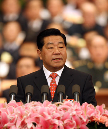 3月3日,中國人民政治協商會議第十一屆全國委員會第二次會議在北京人民大會堂開幕。全國政協主席賈慶林代表政協第十一屆全國委員會常務委員會向大會作工作報告。 新華社記者 姚大偉攝