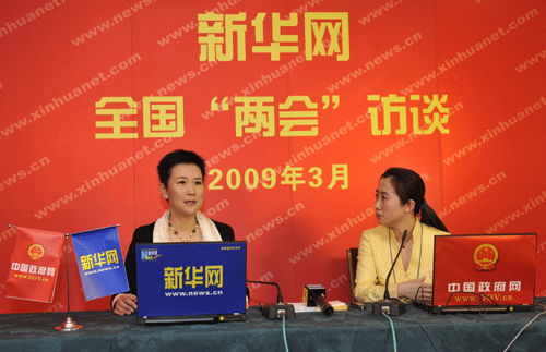 2009年3月3日,中國人民政治協商會議第十一屆全國委員會第二次會議在北京人民大會堂開幕。圖為全國政協委員、中國電力董事長李小琳在開幕前做客新華網、中國政府網設在大會堂的訪談直播間。陳濤攝