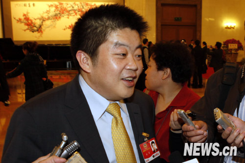 3月3日,全國政協委員、華旗資訊集團總裁馮軍在全國政協十一屆二次會議開幕前接受新華網等多家媒體記者采訪。楊理光 攝