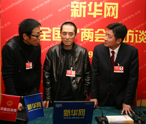 3月3日,張藝謀、張會軍、陳道明三位委員在全國政協(xié)十一屆二次會議開幕前相聚新華網(wǎng)。馬軼群 攝 全國政協(xié)委員、著名導(dǎo)演張藝謀:政協(xié)委員和老百姓一樣,百姓關(guān)心的熱點(diǎn)也是我們關(guān)注的,尤其是應(yīng)對金融危機(jī)和關(guān)系民生方面的問題。比如,剛剛公布的食品安全法,我覺得這與每個(gè)人的生活密切相關(guān),希望和其他委員交流一下,看看在這方面能有什么好的提案。 全國政協(xié)委員、著名音樂教育家金鐵霖:這段時(shí)間,食品藥品安全引起大家關(guān)注,也涉及到明星代言的問題。我認(rèn)為,吃進(jìn)嘴里的關(guān)系百姓生命安全,明星要謹(jǐn)慎代言,否則就要負(fù)連帶責(zé)任。今年我有兩個(gè)提案,一個(gè)是關(guān)于青少年音樂教育,另一個(gè)是進(jìn)一步提高媒體導(dǎo)向。
