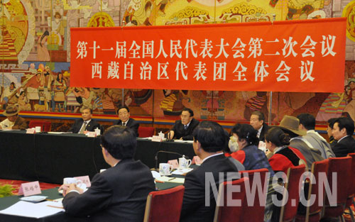 3月6日下午,十一屆全國人大二次會議西藏代表團開放團組,接受媒體集體采訪,西藏自治區人大常委會主任列確、西藏自治區主席向巴平措等回答了記者提問。圖為會議現場。陳濤攝 中國日報網中國在線消息:3月6日下午,十一屆全國人大二次會議西藏代表團開放團組,接受媒體集體采訪,西藏自治區人大常委會主任列確、西藏自治區主席向巴平措等回答了記者提問。 人民日報記者:西藏自治區九屆人大二次會議通過了把每年3月28日定為西藏百萬農奴解放紀念日,請問設立這個解放紀念日的目的和意義是什么? 列確:上世紀50年代,也就是1959年3月份,在西藏120萬平方公里的土地上,轟轟烈烈地進行了西藏民主改革,實際上,這是西藏的百萬翻身農奴自己解放自己的偉大斗爭。當時,在中國共產黨的領導下,百萬翻身農奴向著千百年來壓迫、剝削他們的舊制度進行了沖擊,廢除了政教合一的西藏封建農奴制度,也推翻了農奴主階級對西藏各族人民的殘酷經濟剝削和政治壓迫。搬掉了千百年來壓在西藏各族人民頭上的大山,從此以后,西藏百萬農奴翻身得到了解放,當家做了主人,做了國家的主人,做了新西藏的主人,同時也建立了人民民主專政的新西藏,實現了西藏社會制度的歷史性跨越。這應該說是西藏歷史上最廣泛、最深刻、最偉大的一個社會變革,是西藏社會發展和西藏乃至中國整個人權歷史上的進步和劃時代意義的一個歷史事件,也是人類文明發展史和世界人權史上具有重大意義的一個巨大的進步,這一點我們應該看得很清楚。 詳細 張慶黎表示,西藏實行民主改革50年來,全區發生了翻天覆地的變化,自治區各族人民生活得到顯著改善,這一切有目共睹。1959年自治區國內生產總值只有1.7億元左右,而去年這一數字達到了395億元,增長了225倍,按可比價格來算,增長了65倍。去年農牧民年人均純收入達到3176元,比前年增長13.9%,農牧民純收入多年來保持了13%以上的增長速度。此外,自治區重點投入的安居工程今年也取得突破性進展,今年自治區將提前一年完成“十一五”規劃中21.98萬戶農牧民安居工程的建設任務。 為慶祝農奴解放紀念日,西藏正在準備多項演出活動,屆時將在拉薩和北京推出。他說,西藏各界非常支持設立農奴解放紀念日,西藏自治區人民代表大會全票通過了這項提議。 1月19日,西藏自治區人大通過決議,將每年的3月28日設立為“西藏百萬農奴解放紀念日”。 新華網消息 3月6日下午,十一屆全國人大二次會議西藏代表團開放團組,接受媒體集體采訪,西藏自治區人大常委會主任列確、西藏自治區主席向巴平措等回答了記者提問。 人民日報記者:西藏自治區九屆人大二次會議通過了把每年3月28日定為西藏百萬農奴解放紀念日,請問設立這個解放紀念日的目的和意義是什么?