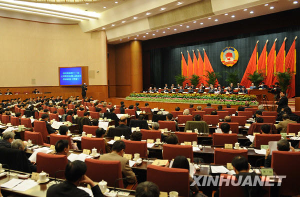 3月11日,政協第十一屆全國委員會常務委員會第五次會議在北京舉行。中共中央政治局常委、全國政協主席賈慶林主持會議。新華社記者李學仁攝