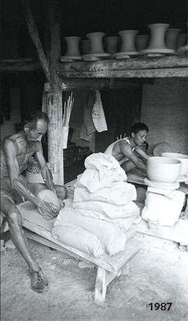 那張拍于1987年的黑白照片取景的地方是有名的工業城市——景德鎮,也是一座生產陶器和瓷器的古老城市。這也就是為什么我們看到直到上世紀80年代,這里大多還采用古老的生產工藝,工作條件就算不說是原始也是很簡陋的。